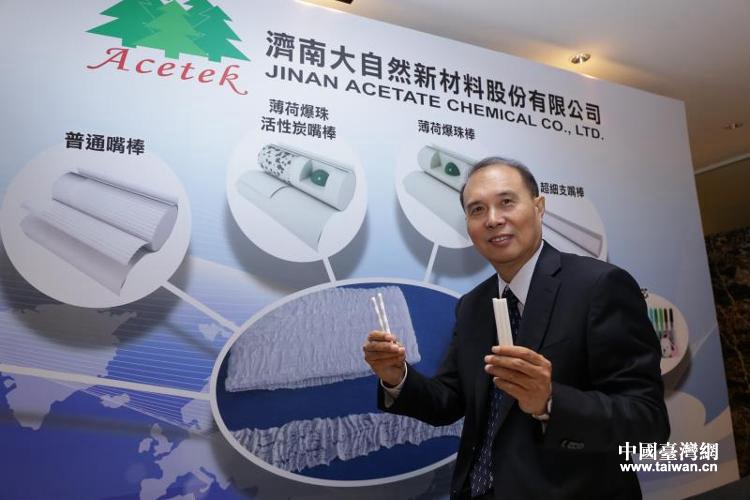 王克璋展示公司產品(圖片來源:山東省台港澳辦)